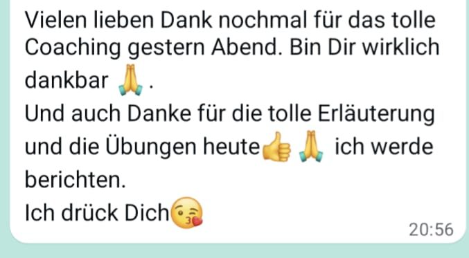 In meiner Arbeit verbinde ich fundiertes psychologisches und traumasensibles Coaching mit schamanischer Energiearbeit, Techniken der TCM, Yoga- und Körperübungen, NLP, Reiki und Breathwork.