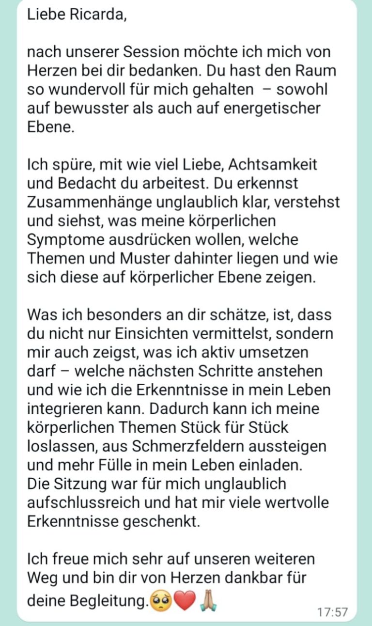 Bei tief sitzenden körperlichen und emotionalen Themen unterstützte ich dich gezielt dabei diese zu lösen und dich aus alten Rollen und Mustern zu befreien - besonders dann, wenn klassische Therapieformen nicht weiterhelfen.