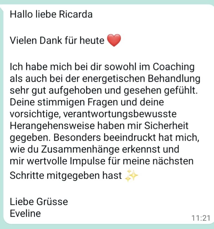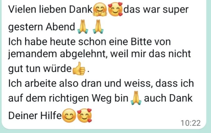Meine Leistungen stellen Coaching und Begleitung dar und ersetzen keine medizinische oder therapeutische Behandlung. Ich gebe keine Heilversprechen und stelle keine Diagnosen.